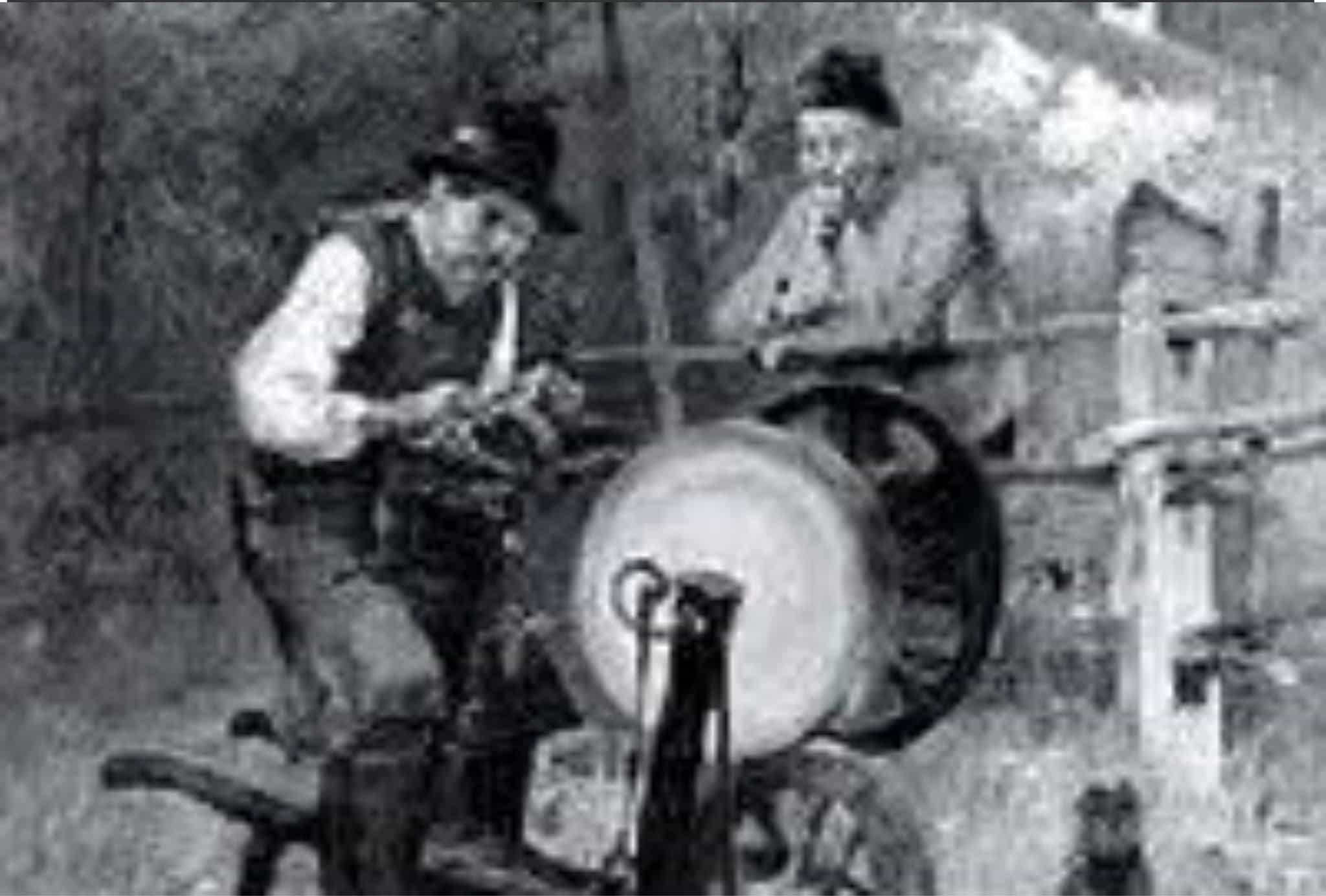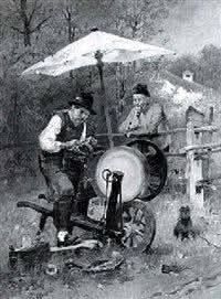 Piedra recién pulida, rueda gastada por el tiempo con una banda de jebe y una tira de cuero, un recorte de periódico pasado para probar el filo de las tijeras eran sus instrumentos de labor.